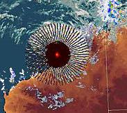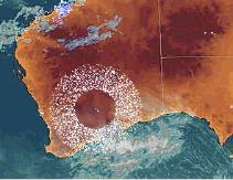 Saturday 16 January 2010 Nation Radar on a loop watching rain and cloud formation .Strange circular pattern of clouds over Western Australia.